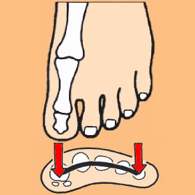矢印が示す足指の付け根に掛かる荷重も