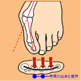 かって、タコや筋状の角質ができたり、