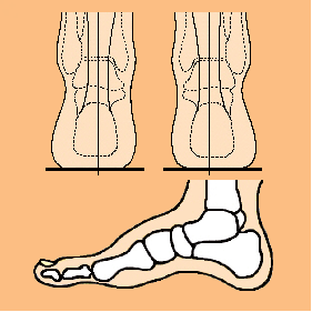 床とほぼ垂直に、まっすぐ立ちます。足の 内側の縦アーチ(いわゆる土踏まず)も荷 重に耐えて空間を保持しています。足に備 わった最も大きなクッションが機能するこ とによって、歩いても疲れにくい足を保つ ことができます。また、歩くことで筋肉が 働き、「足は第二の心臓」と言われるポン プ活動をています。ところが「扁平足」に なると、その機能が低下して、足がむくみ 易くなるのです。ちょっと歩いただけで息 切れしたり、足が重く感じたりするので す。 |